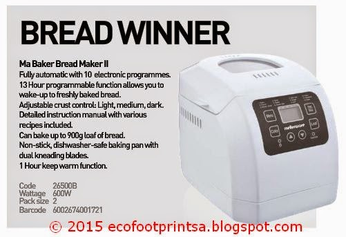 On our last trip to the co-op in Swellendam, I went looking in their kitchen appliance section, and came across two bread makers - a Russel Hobbs model, and a Mellerware one.
